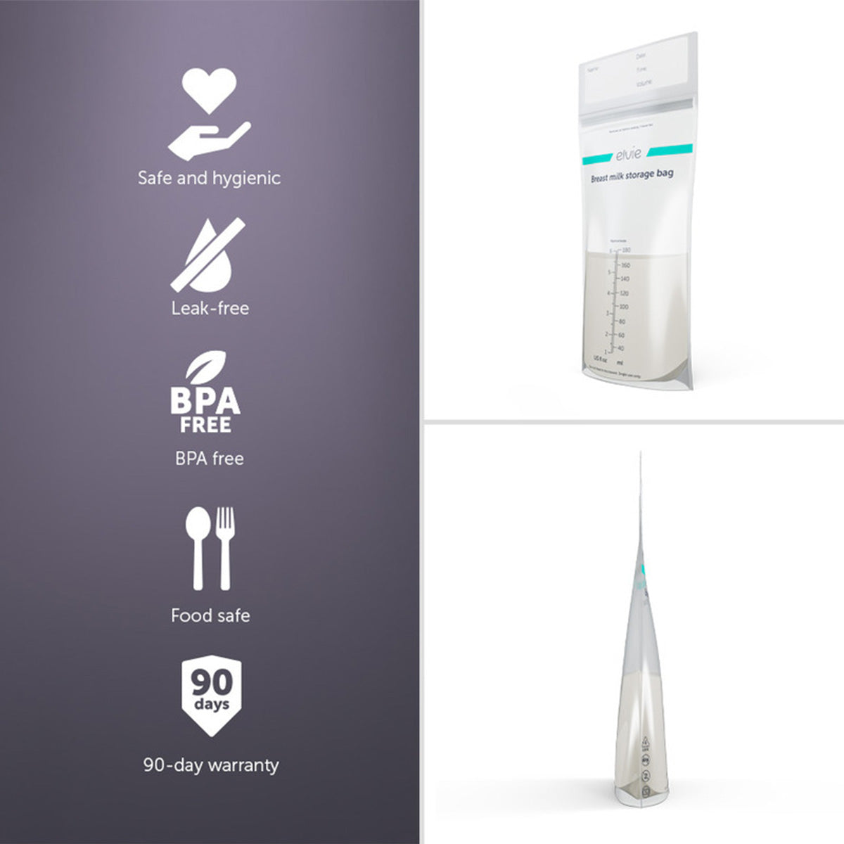 Försteriliserade Inga skadliga ämnen. Elvie Mjölkpåsar är fria från BPA och BPS och ger säker och hygienisk förvaring så att ditt “flytande guld” håller sig i bästa skick.