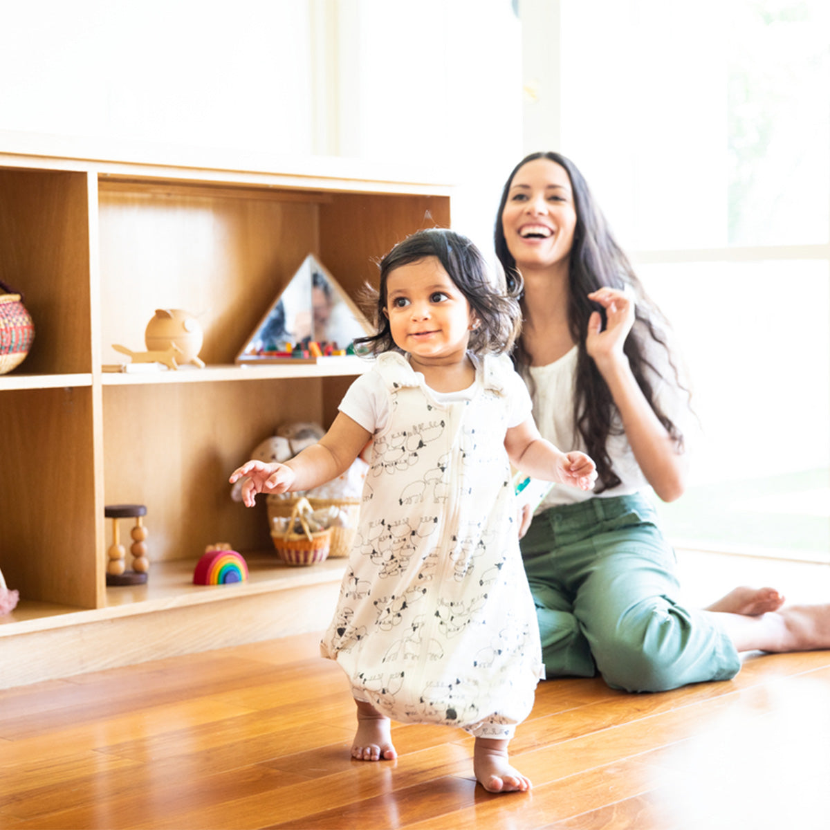 Få en problemfri overgang fra søvn til leg med soveposen "On the Move". Put fødderne i soveposen, når det er sengetid, og skift til soveposens gåfunktion, når barnet vil lege eller tumle rundt.
